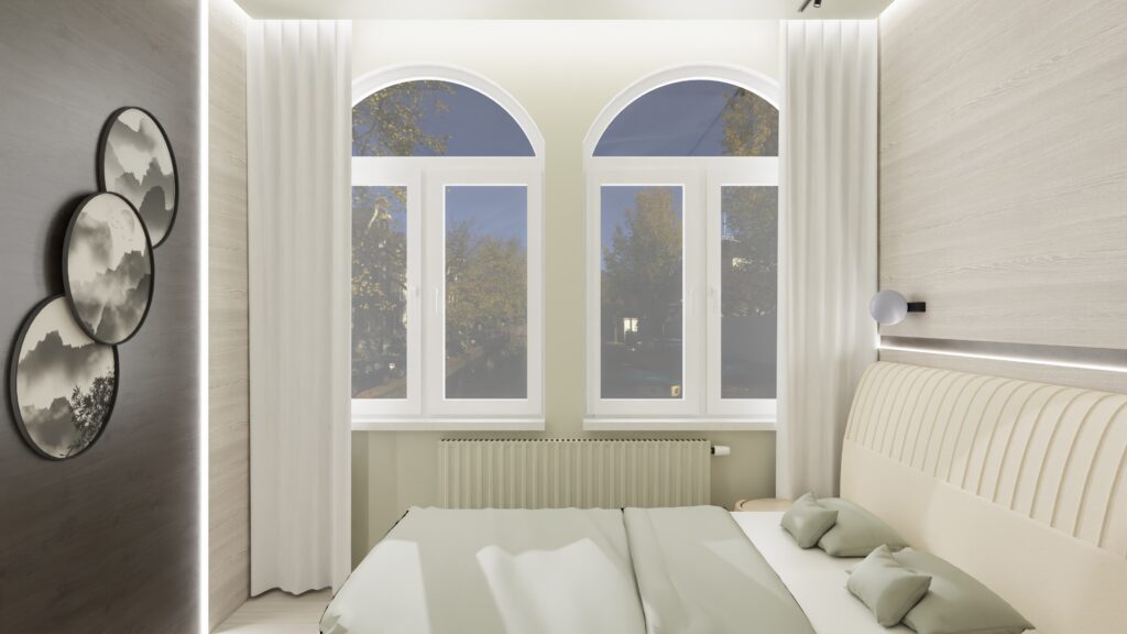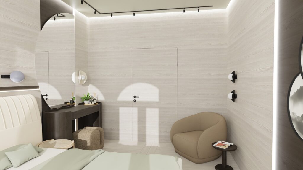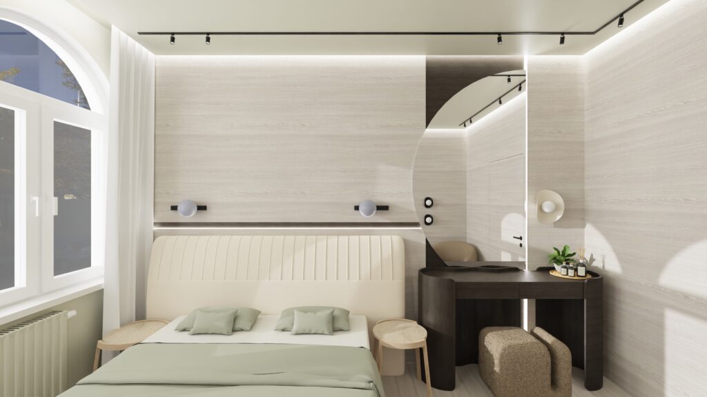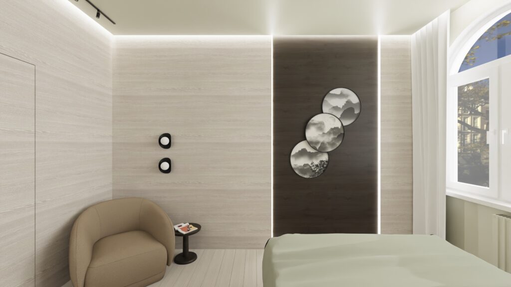Japandi grey sypialnia