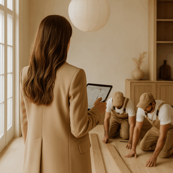 nadzorowanie odbiorów etapowych (instalacje, gładzie, podłogi, meble)