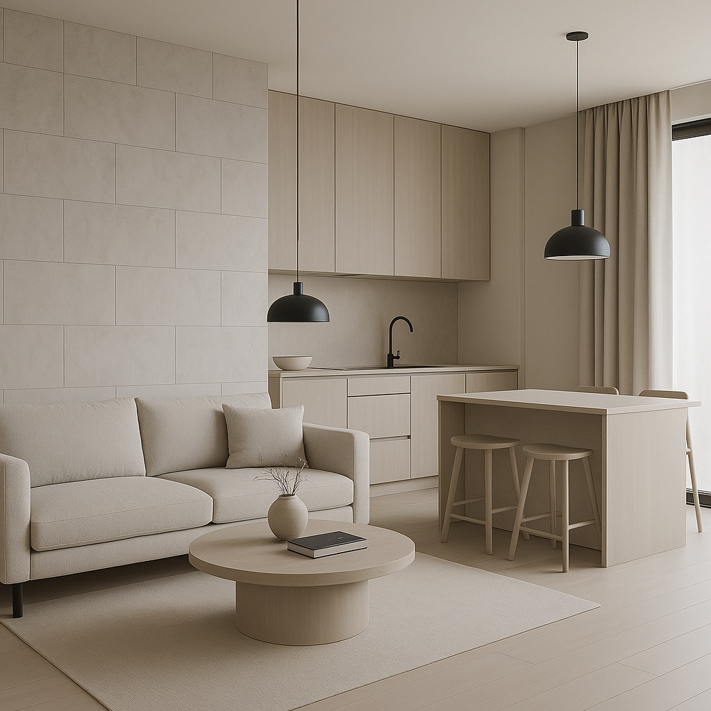 Szybki i funkcjonalny projekt kuchni, łazienki lub salonu – idealny, jeśli chcesz odmienić jedno kluczowe pomieszczenie inwestycji pod wynajem lub sprzedaż.